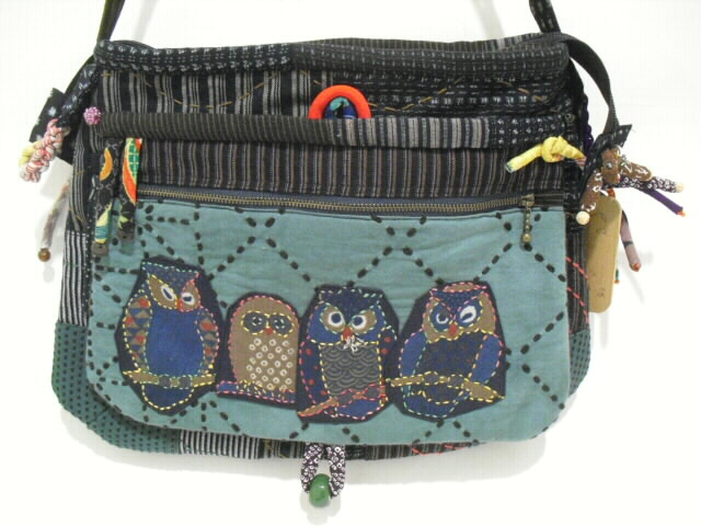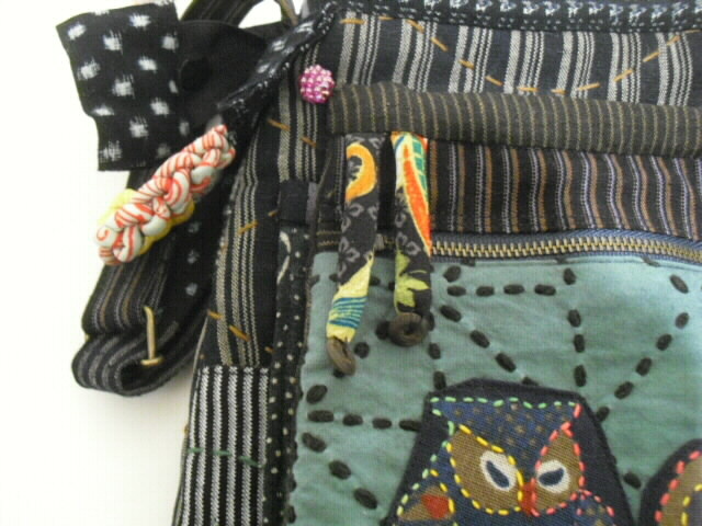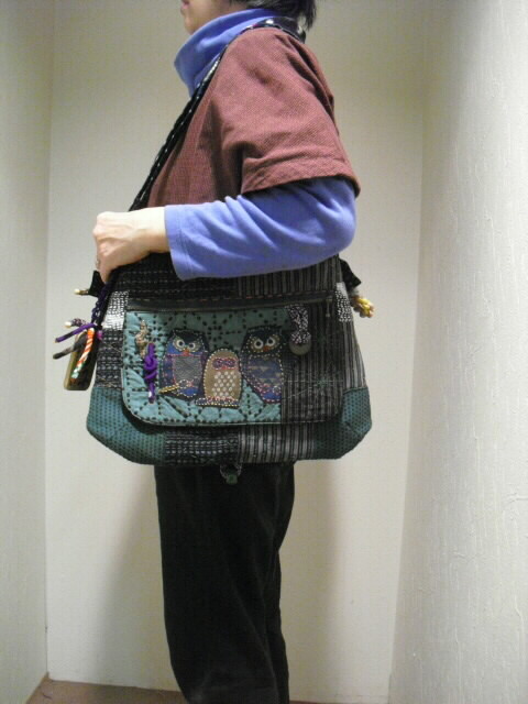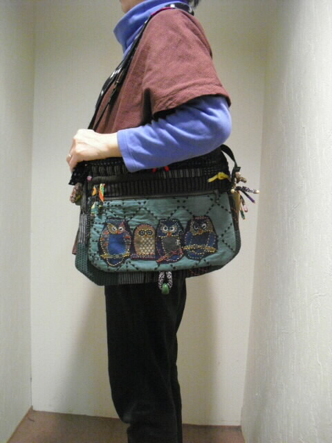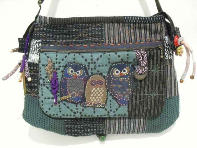 高価な古布をパッチワークで組み合わせて作った手づくり一点モノのショルダーバッグです。