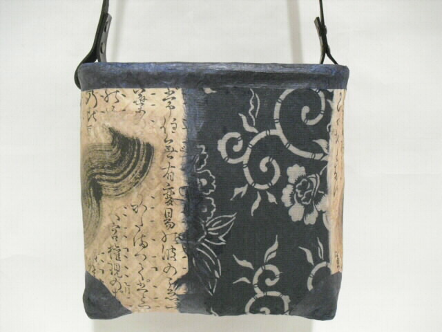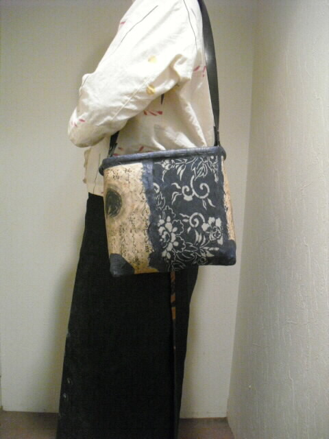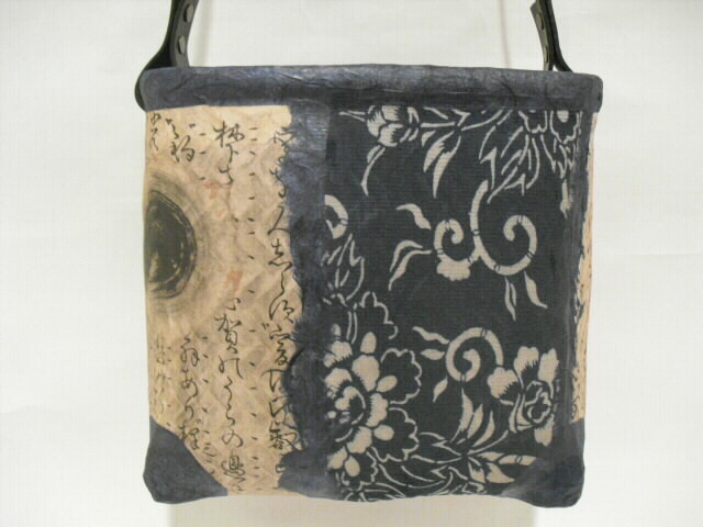 こちらの作品は和紙と古布の型染めを貼り合わせて作っています。