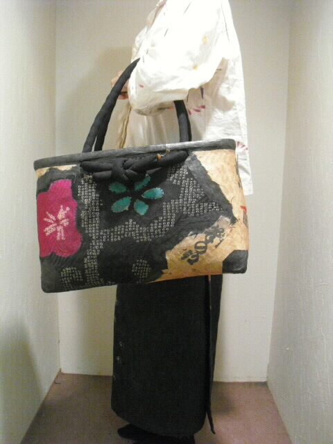 こちらの作品は和紙と着物地を貼り合わせて作っています。