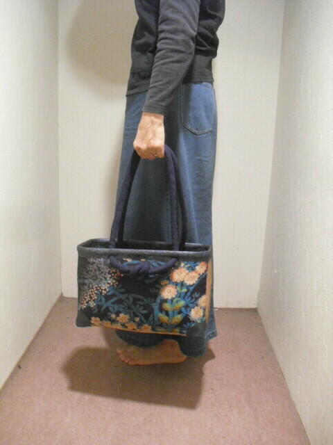 こちらの作品は和紙と留袖の着物地を貼り合わせて作っています。