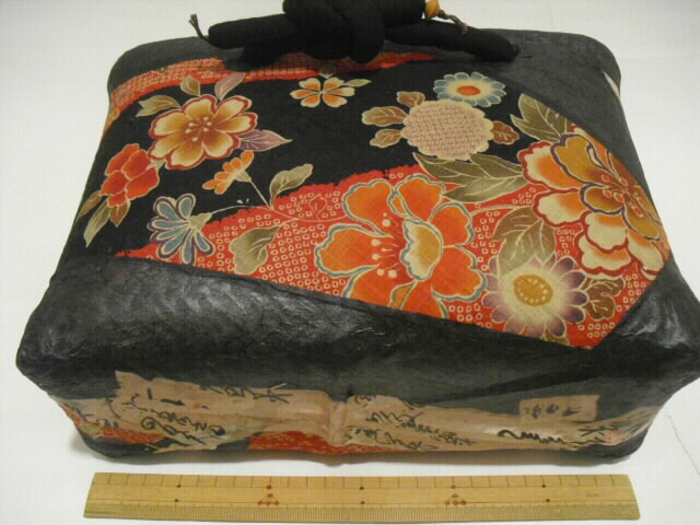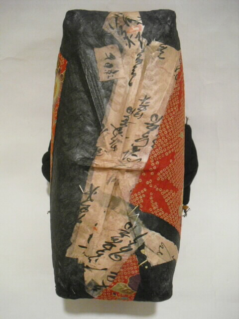 こちらの作品は和紙と着物地を貼り合わせて作っています。
