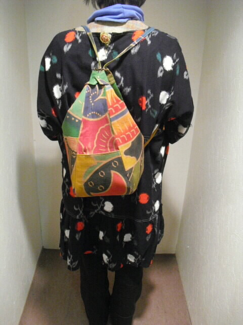 柿渋染めしたのぼり旗で作ったお洒落で素敵なバッグです。このバッグは手提げバッグ・ショルダーバッグ・リュックサックの3つの使い方ができる3WAYバッグです。その日の荷物や気分に応じて、使い方を変えてください。