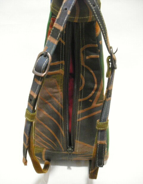 このバッグは手提げバッグ・ショルダーバッグ・リュックサックの3つの使い方ができる3WAYバッグです。その日の荷物や気分に応じて、使い方を変えてください。開け口はファスナー式です。本体のサイドにもファスナーがついていて開閉可能ですので、荷物の取り出しが便利です。表には深さ15cm×幅22cmポケット。サイドに深さ12cm×幅10cmが付いています。中に2個(深さ15cm×幅9cm、深さ15cm×幅7cm)付いています。綿素材ですのでお手入れも簡単。190gと軽く仕上がっています。硬めの芯を使いましたので柔らかい感じではなく、カッチリしています。柿渋染めは生地を丈夫にし使い込むごとに色目を増すのが最大の特徴です。ご自分だけの味わいの色に育てあげてください。ちょっとしたお出かけに・・・周りの視線を惹きつける♪お洒落な手づくり一点モノのバックです。価格 14,500円