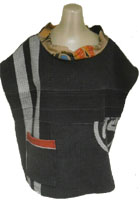 高価なリメイク素材の古布の酒袋と武者のぼりを組み合わせて作った個性輝くベストです。 柿渋染め(鉄媒染した武者のぼりを組合せています。