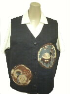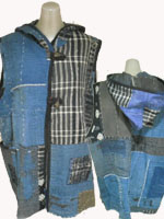 綿の生地を組み合わせて作ったベストです。丁寧に裁断、縫製した個性的で飽きのこないベストです。