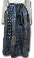 藍染め無地と襤褸(ぼろ)を組み合わせて作ったパンツです。数種類の藍染め無地をベースに貴重価値の高い昔の襤褸(ぼろ)をパッチワークを使って仕立てました。