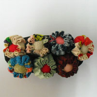 | | | | | | | | 花びらの周りは一枚一枚、布を巻いたワイヤーで作っています。上下、左右にに動かせますので自由にアレンジできます。 横 約 6cm