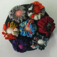 | 古布の着物で作ったお花のブローチです。 何種類もの着物を使用しています。 日本の伝統美、着物の柄を生かした お洒落な逸品。 一つひとつ、手作りですのでとても 温かみがあります。