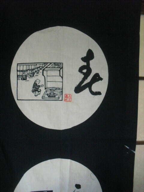 @のれん 縦 約105cm×横 約102cm 4柄、1柄の直径34cm 乳(竿通し布)付