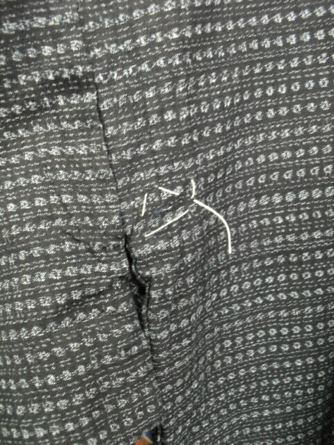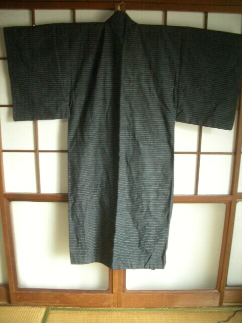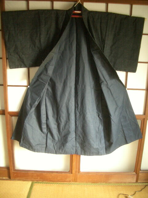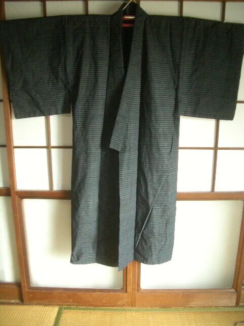 古布 着物 書生絣(男絣)【素材】綿 【身丈】 130cm【裄丈】 63cm 【袖丈】 48cm【前幅】 26cm 【衽幅】 15cm【後幅】 30cm 【つま下】 65cm【備考】2箇所にキズ