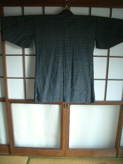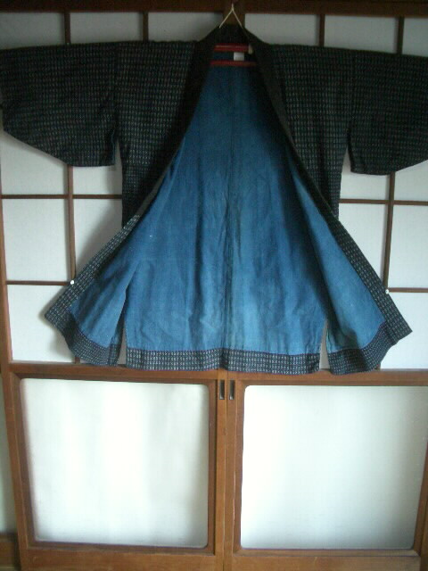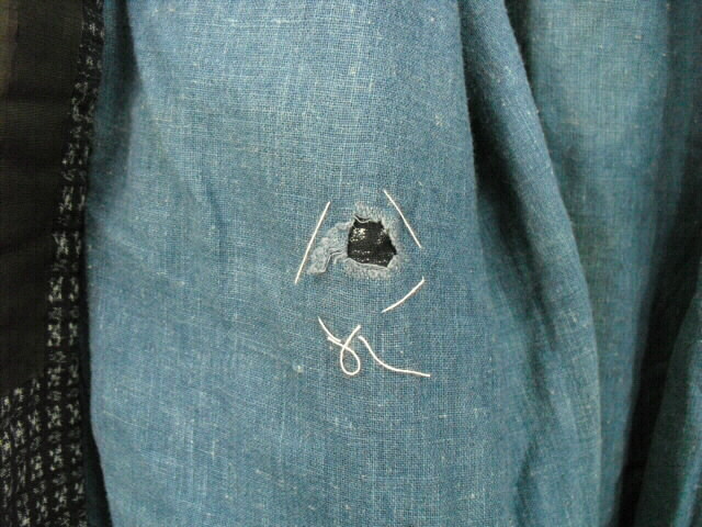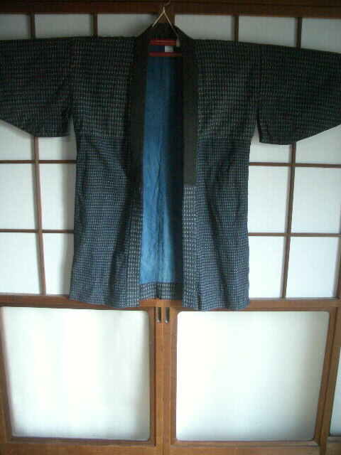 古布 半纏 書生絣(男絣)【素材】 綿【着丈】 88cm【裄丈】 62cm 【袖丈】 32cm (袖口 22cm)【前幅】 25cm 【脇まち】 0cm【後幅】 28cm 【羽裏】 84cm【備考】裏地は藍染め綿生地裏地に破れあり価格 6,800円