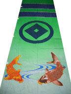 絵のぼりでも江戸初期から、子供の立身出世祈願として盛んに描かれており、最も古い図柄の 一つです。また江戸中期になると、庶民が絵のぼりの「鯉の滝昇り」の図柄をヒントに、鯉の形を