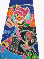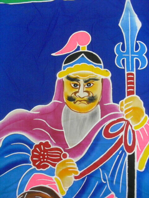 武者のぼりは綿(コットン)素材です。昔(昭和40年代以前の)のぼりは「平織り」、最近は、より丈夫で厚い「綾織り」が主流です。詳しくは「幟の素材と染色について」をご覧ください。