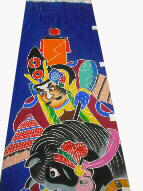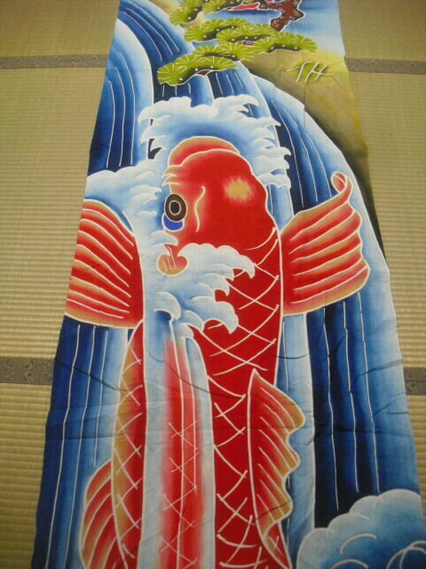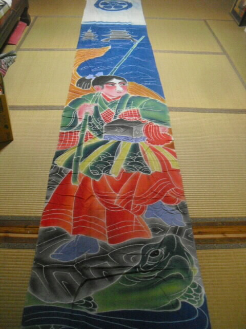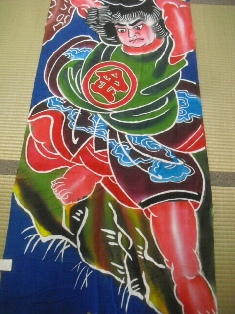 この幟は化学繊維(ナイロン)です。ツルツルした手触りです |