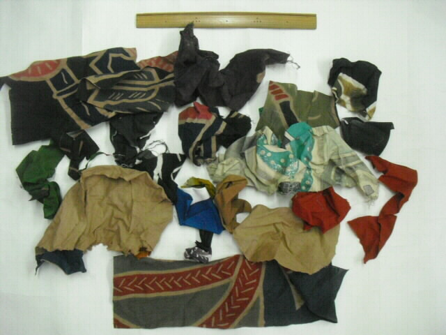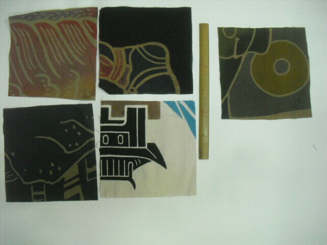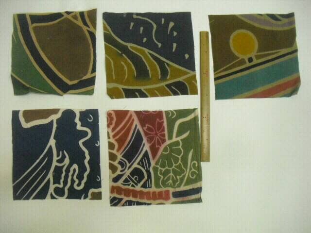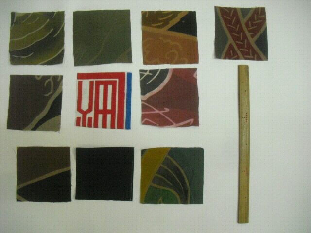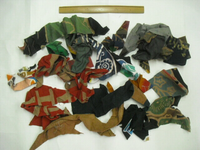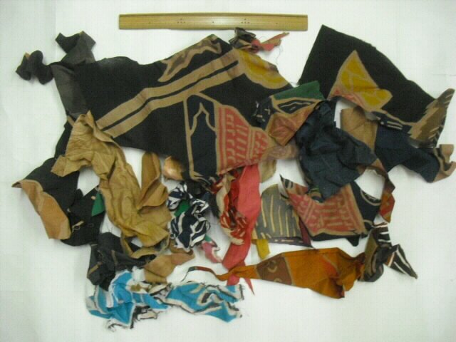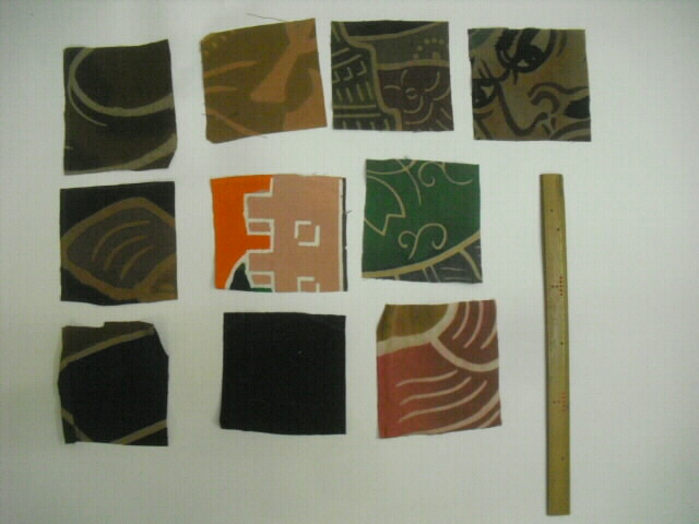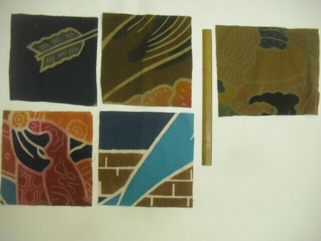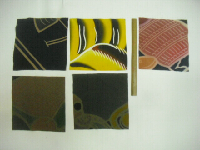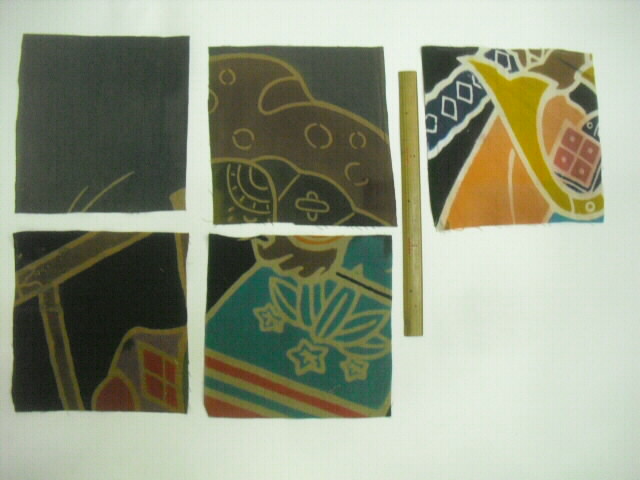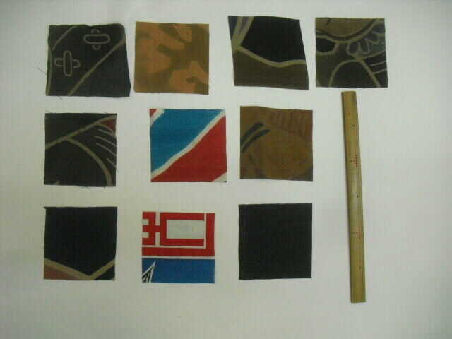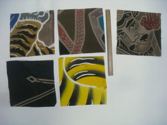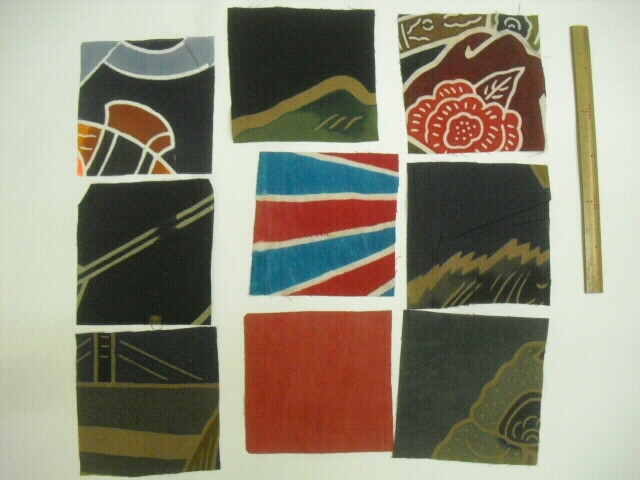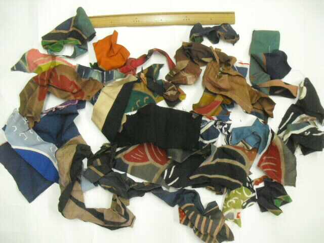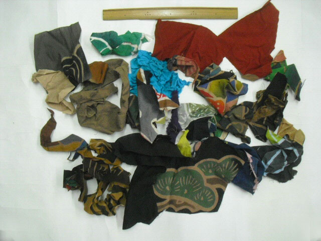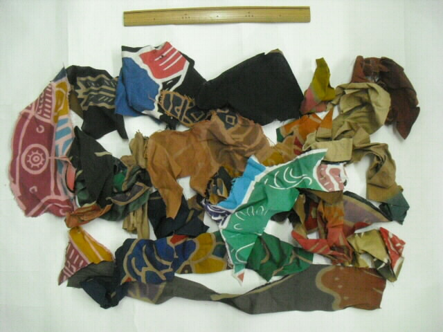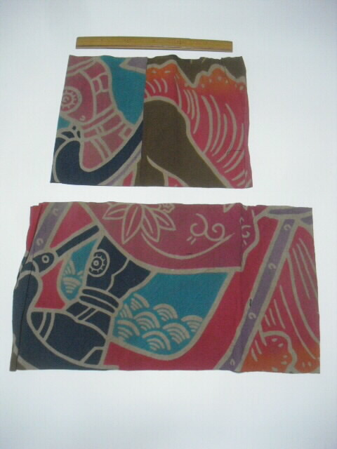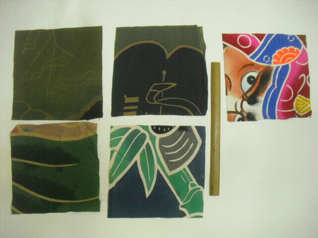 武者絵のぼり、大漁旗のハギレをセットにしたものです。柿渋染めハギレも入れています。