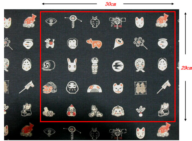絵柄は約88cmの繰り返し、30個(横6個×縦5個)の絵柄が入っています。