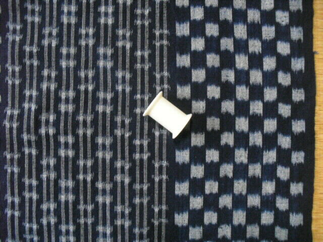 藍染のかつお縞に白糸で刺し子がしてあります。