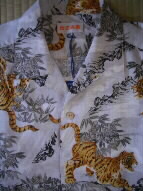 和柄(虎柄)の綿生地から作成しました。