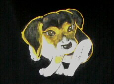 「犬」の絵のTシャツが欲しい。とのお客様のご要望で描きました。 |