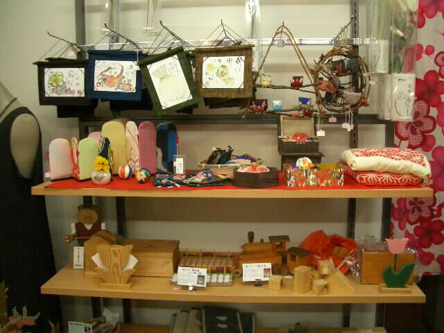 | 憩いのスペースです。素敵な手づくり品の中でお客様の笑い声が絶えません。 |  | 天井には昔の幟旗を飾っています。 |  | 店内には全国から寄せられた素敵な手づくり作品がいっぱいあります♪ |  | 和風雑貨のコーナーもあります。 | | 店内には和楽器の癒しの音楽が流れています♪ |