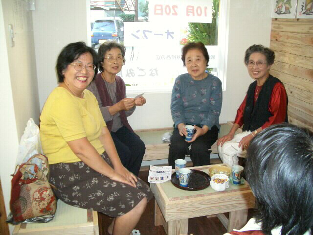 | | 手づくりの雑貨類。手作り品は木工品などもあります。 | | 着物リメイク服はオーダーも承っています。 | | 憩いのスペース。手作り縁台は10名まで座れます。お茶を召し上がりながらお客様の笑い声が絶えません。 | | |